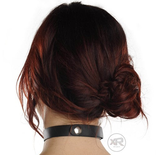 Show off your property or express yourself with this Slut collar. Identification collar is made of black leather, with four snaps and has steel letters. Collar is 0.75 of an inch in width and can adjust in length from 14" to 17".
