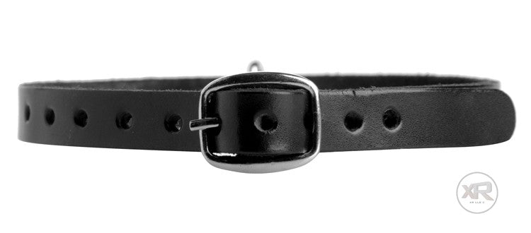 This choker can not only enhance the look of your female sub, but has the added benefit of an O-ring for attachment to a leash. The choker is made of comfortable leather and uses a belt style buckle system to close.