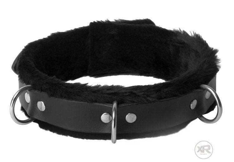This attractive and functional bondage set, gives you everything you need to enjoy quality bondage play with your partner. The set includes a fur-lined leather collar, two wrist cuffs, and two ankle cuffs. The cuffs have rolling buckle with lockable clasp. They are double-layered for a secure and durable fit. The D-rings lets you attach them to each other, bedposts, your choice.Fur-Lined Bondage Kit Contents: