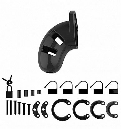 Keep that cock locked away until you're ready to abuse it! This high-quality polycarbonate chastity cage is the perfect way to confine your partner's pathetic penis and control their sexuality. It is lightweight, durable, and hypoallergenic, making it ideal for long-term wear. Even better, it comes with not just a metal lock, but also several plastic tie-locks so that your slave can be mercilessly trapped, even when going through a metal-detector. To accommodate different sizes and tightness preferences, 4 different rings are included. Connect the cage to the rings with the two guidance pins and the oval taper pin and lock your plaything up to enjoy their helpless desperation. To maintain proper hygiene, this cage is outfitted with vents along the shaft and a hole for your slave to piss through. How long will it take for your pet to be begging you for mercy?
