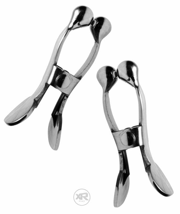 These stainless steel nipple clamps were designed for intense sensation play. You masochists will love the sharp pinch of these ball-tipped clamps as they bite into their tender and most sensitive parts! With a classic and aesthetically appealing design, these clamps add elegance to any play scene, enhancing the mood as your lover is elevated to an enhanced feeling of euphoria. Pain and pleasure come together perfectly with these luxurious, easy-to-use clamps!Stainless Steel Ball-Tipped Nipple Clamps Specifications: