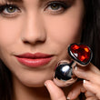 Who knew that the best way to someone's heart is sometimes through the booty? Available in three sizes, these smooth, metal butt plugs are easy to insert, comfortable to wear, and fantastic for all experience levels. The slim stem and broad base keep the plug securely in place, even when things get wild! Adorned with a beautiful heart-shaped gem, this gorgeous plug will make your asshole sparkle temptingly, begging your lover to play. Made of nickel-free aluminum allow, it is heavy enough to provide a greater sense of fullness and can also be heated or cooled in water for temperature play. The non-porous material sanitizes thoroughly with mild soap and water and can be used with any lubricant of your choice.