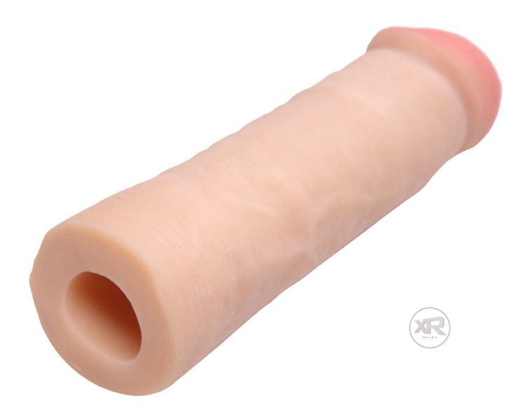 It's for those moments when you want to increase your cock's girth, but don't desire any devices that plug in somewhere or take batteries. The Mega Penis Sleeve is designed to slip easily over your cock and give you that increase you want. It also has the look and feel of a cock. The sleeve adds another 2" in length and nearly 1" in girth. If you need a custom fit, the bottom can be cut (with scissors). The sleeve stays snugly in place can even be used as a condom.Mega Enlarger Penis Enhancement Sleeve Specs and Benefits: