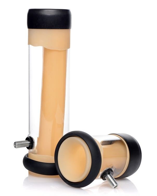 Has your cock worn out the cylinders on your milking machine? Replace them with two sizing options, compatible with the Milker Automatic Deluxe Stroker Machine. Enjoy the unique sensations delivered by the soft, natural rubber inner sleeve as it contracts on your penis. To preserve the materials, use with only water-based lubricants. Clean after use with mild soap and warm water.