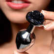 Real roses will wilt, and your lover is guaranteed to appreciate what's nestled between your ass cheeks much more! Available in three sizes, these smooth, metal butt plugs are easy to insert, comfortable to wear, and fantastic for all experience levels. The slim stem and broad base keep the plug securely in place, even when things get wild! Featuring a blooming, black rose ornament, this uniquely romantic plug will make your asshole so irresistible that they won't be able to keep their hands off it! Made of nickel-free aluminum allow, it is heavy enough to provide a greater sense of fullness and can also be heated or cooled in water for temperature play. The non-porous material sanitizes thoroughly with mild soap and water and can be used with any lubricant of your choice.