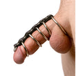 Put your penis in purgatory with the Gates of Hell! This intriguing product is made up of a series of nickel plated steel rings (5 or 7 depending on your choice) and is attached together by a leather strap. The first ring is for your cock and the balls the rest of the rings are to secure the penis.