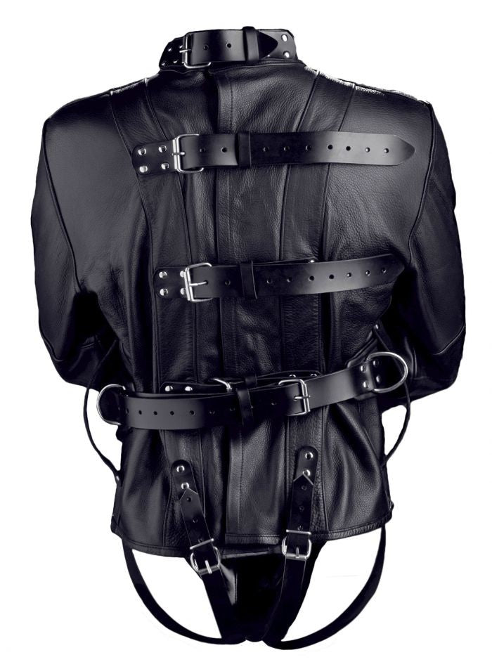 You know that you can drive your partner crazy with passion, yet when you see their desire going over the edge keep them under control with this premium Strict Leather Straitjacket. Strap your partner in good and tight and then enjoy having your way with them. The jacket uses a series of belt style straps to lock your partner in. There is 1 strap at the neck, 3 down the back and 2 straps for wrapping around the thighs. We've also reinforced the elbows with extra leather to help minimize wear and tear from all the different arm positioning you will be putting your sub in! There are three D-rings (1 at the neck and 1 on each sleeve) to allow for more bondage positions.
