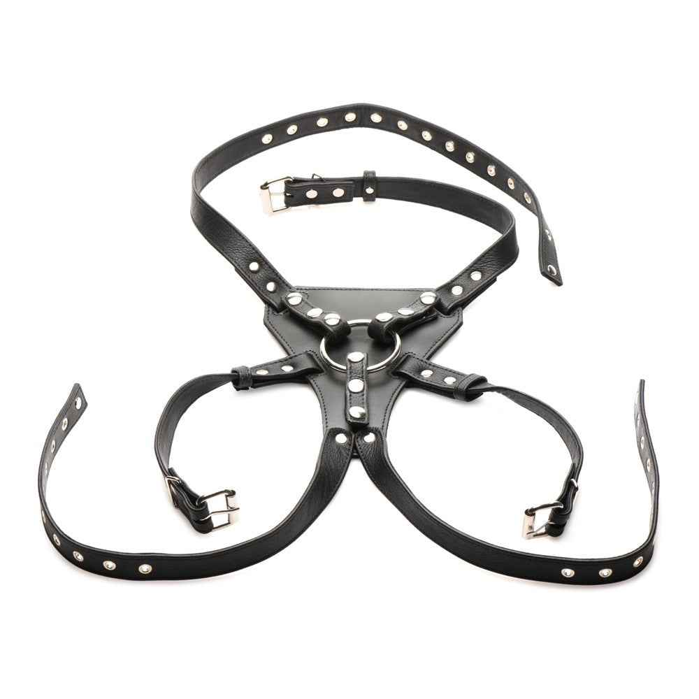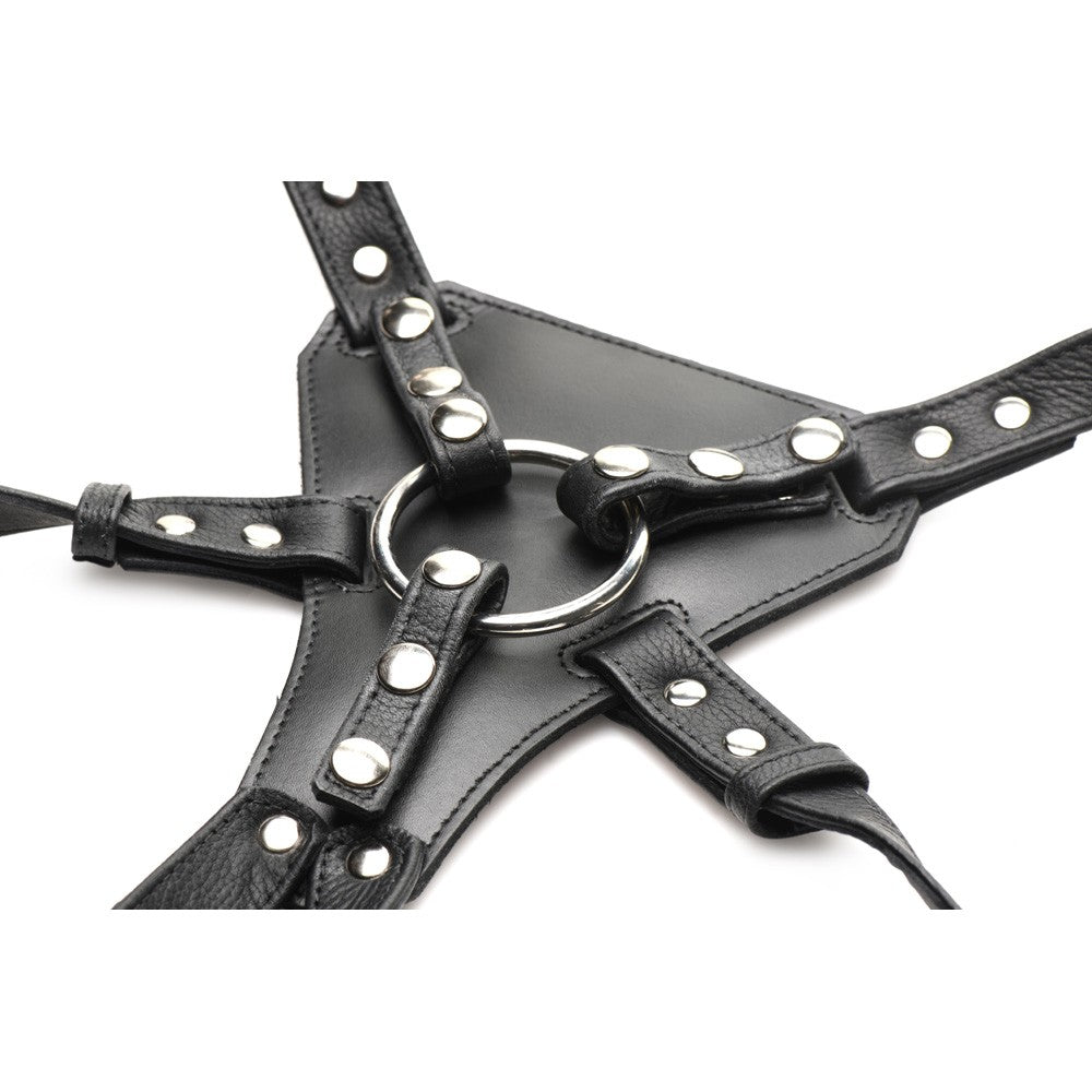 - Thigh and Waist Straps: The harness straps wrap around the wait over the hips and around each thigh for optimum control as you thrust and ergonomic weight-bearing on the hips. The straps are covered in sexy brass buttons for a chic, kink aesthetic and the buckles are made of strong, durable iron. You'll marvel at the look and feel, from the front and back.
