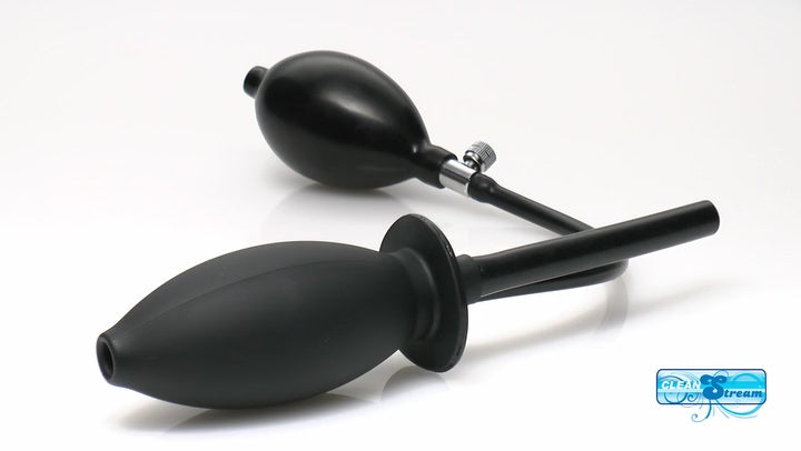 The buttplug inflates by means of a bulb with release valve. This inflatable enema plug is built to last.