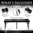 • Note: Table can support a max weight of 650 lbs. Table includes 2 pairs of cuffs. All other accessories are sold separately.