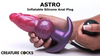 You feel the Astro before you inflate it. Thick veins running down the shaft. Raised bumps clustered around the mid-shaft bulge. It goes in at 2.4" and those veins are already dragging against your inner walls, catching on tissue, pressing into spots that smooth plugs slide right past. The tapered tip opens you up and then the texture takes over. By the time the crescent base is flush against your body, your hole is full of ridged, veiny silicone and you have not even started pumping.