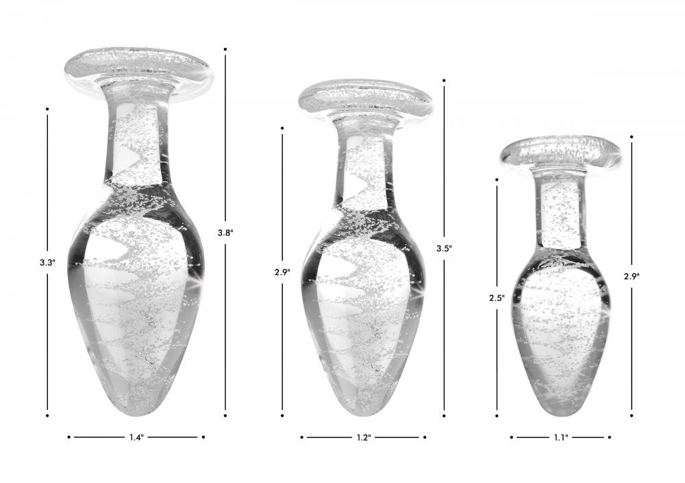 These hard, satisfying anal plugs provide a pleasurable fill and a kinky glow to your backdoor! Constructed with smooth and durable borosilicate glass to provide a rigid mass for your ass to squeeze on and enjoy. Turn out the lights and enjoy its kinky glow lighting up your bedroom!Insert this glowing anal plug in secret and surprise your lover with its glowing goodness when you pull down your pants or life your skirt! The durable borosilicate material is naturally hypoallergenic and body safe - all plugs are smooth and nonporous, latex free, and phthalate free for body-safe anal fun. Add another layer of senation to your ass and indulge in temperature play - heat or chill these plugs in the refrigerator or warm bowls of water and enjoy a new kinky sensation!