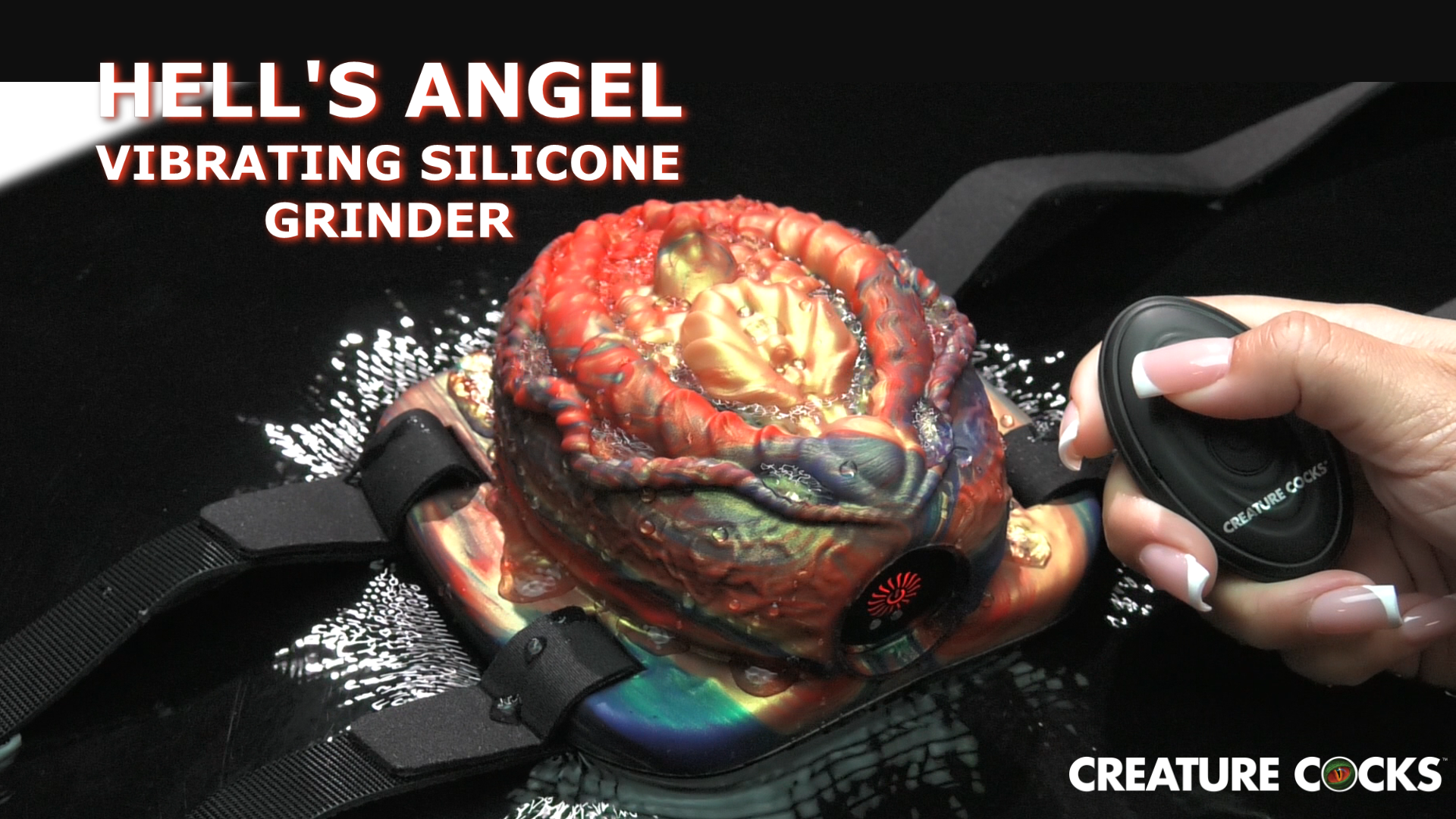 Step into a world of unparalleled pleasure with the Hell's Angel Vibrating Silicone Grinder. The devilishly textured vulva, complete with soft grooves and ridges, invites you to ride on for an unforgettable experience. Featuring a bullet vibrator with 3 speed settings and 7 pulsation patterns, easily controlled by a remote from 26 feet away, this soft and squishy pad promises diverse sensations as you rub your clit against it and writhe on top. It's made from high-quality, phthalate-free, body-safe silicone, ensuring both safety and luxury. The flexible neoprene straps enable you to attach the pad securely to a variety of surfaces or your partner so you can try any position or scenario you desire. Waterproof rated at IPX6 and rechargeable via USB, the grinder combines convenience with extraordinary pleasure. Let your fantasies run wild and summon the demon of pleasure tonight!