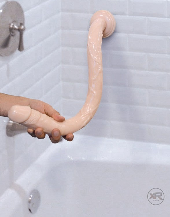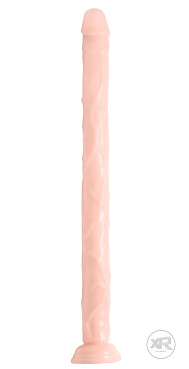 Can you take a big dick? Here's 18" of realistically textured cock for you to shove in any hole that you think can handle it. Its suction cup base allows you mount it to a flat surface so that you can ease it into your pussy, ass, or if you want to practice your deep throating, even your mouth! This enormous dildo is designed to be flexible so that it can match the internal curves of your body as it snakes into you!Imagine: