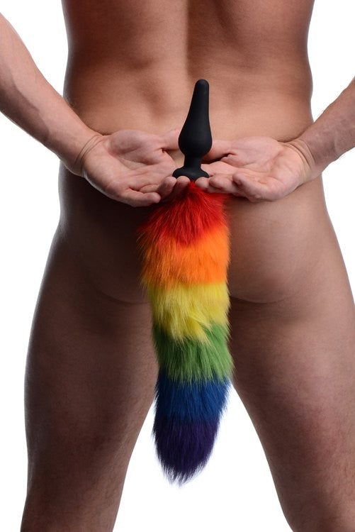 Let your partner know exactly what you’re in the mood for when they find you on your hands and knees with a tail plug shoved up your booty! This fluffy rainbow-colored tail is playful and sexy, exciting your partner and stimulating you! As your ass sways back and forth, the tail will brush sensually against your thighs. The narrow plug has a tapered tip for easy and comfortable insertion. Made of silicone, it is non-porous and phthalate-free and sanitizes effectively with mild soap and warm water. Not compatible with silicone lubricant.