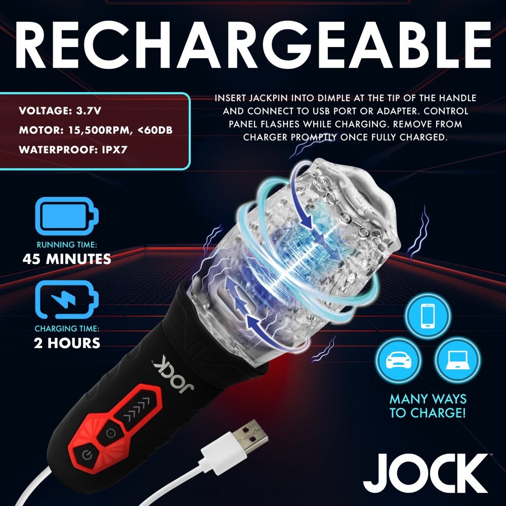 Slip your cock into the transparent mouth and prepare for serious mouth-service! This spinning and vibrating stroker is designed to offer 3 speeds and 7 distinct vibration patterns and is further enhanced with 5 spinning modes for maximum gratification. The mouth-shaped entry invites you to sate yourself an intricately nubbed interior, which flexibly adapts to grip and massage every contour of your shaft. Boasting an IPX7 waterproof rating, it opens up new dimensions of water-friendly self-pleasure, perfect for shower or bath-time sessions. Made from body-safe, phthalate-free materials and is easily rechargeable using the included USB cable.
