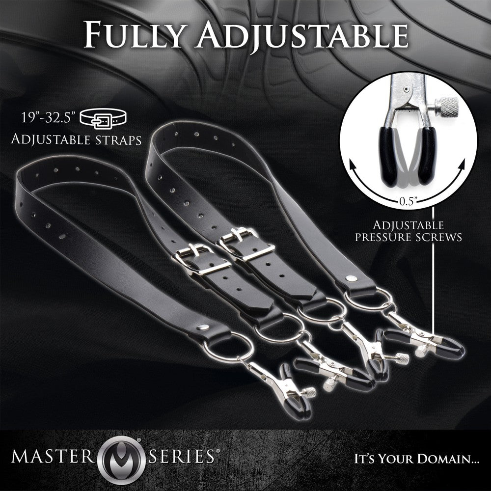 Adjust the clamping intensity with easy to use screws and find the perfect stretch with the adjustable leg strap buckles! The rubber tipped clamps is easy on the sensitive parts of your sub and lets you freely enjoy their lips without worry. Tie your subject down and enjoy the heightened mental sensitivity as a result of their now-open privates!