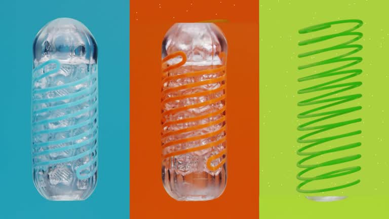 Featuring fanned tiles with firm edges, the Shell stroker from TENGAs Spinner collection will take you for a spin! An all-new internal coil within the double-layered structure makes the Spinner twist as you insert, sending unbelievable sensations through your shaft with each stroke. Enjoy a unique stimulation like none other with this removable stroker in a can. The Spinner can be washed and reused, and also has a drying stand built in for hygienic drying. A lotion sample is included for your immediate satisfaction.