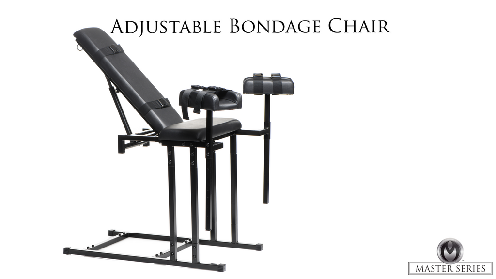 - Half Reclined (Male, Pegging): Bring their hips to the very edge of the chair so their cock and balls hang down. With the chair in a 45 degree angle, bind their chest and waist with the straps and bring their hands over the head by attaching cuffs to the D-rings on the chair. Their legs are strapped in so they're completely at your mercy! Play with their cock and get them excited; use a stroker, vibrator, or your hand to tease them. Then switch it up with some CBT; use a ball stretcher and tug down on their balls. Add a few weights to really make it intense for them! Play with their nipples and use nipple clamps. Use a paddle, slapper, crop or flogger to punish and play with them. You can even try out some e-stim and see how much you can get them to writhe and struggle in the chair! At last, milk them until they beg you to let them cum!