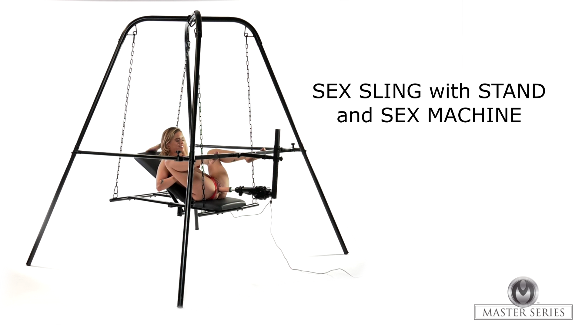 • Suspended in Air: This sturdy stand holds up a flat, cushioned board on a chain-link sling with removable stirrups so you can enjoy endless, passionate encounters or self-pleasure with the machine!