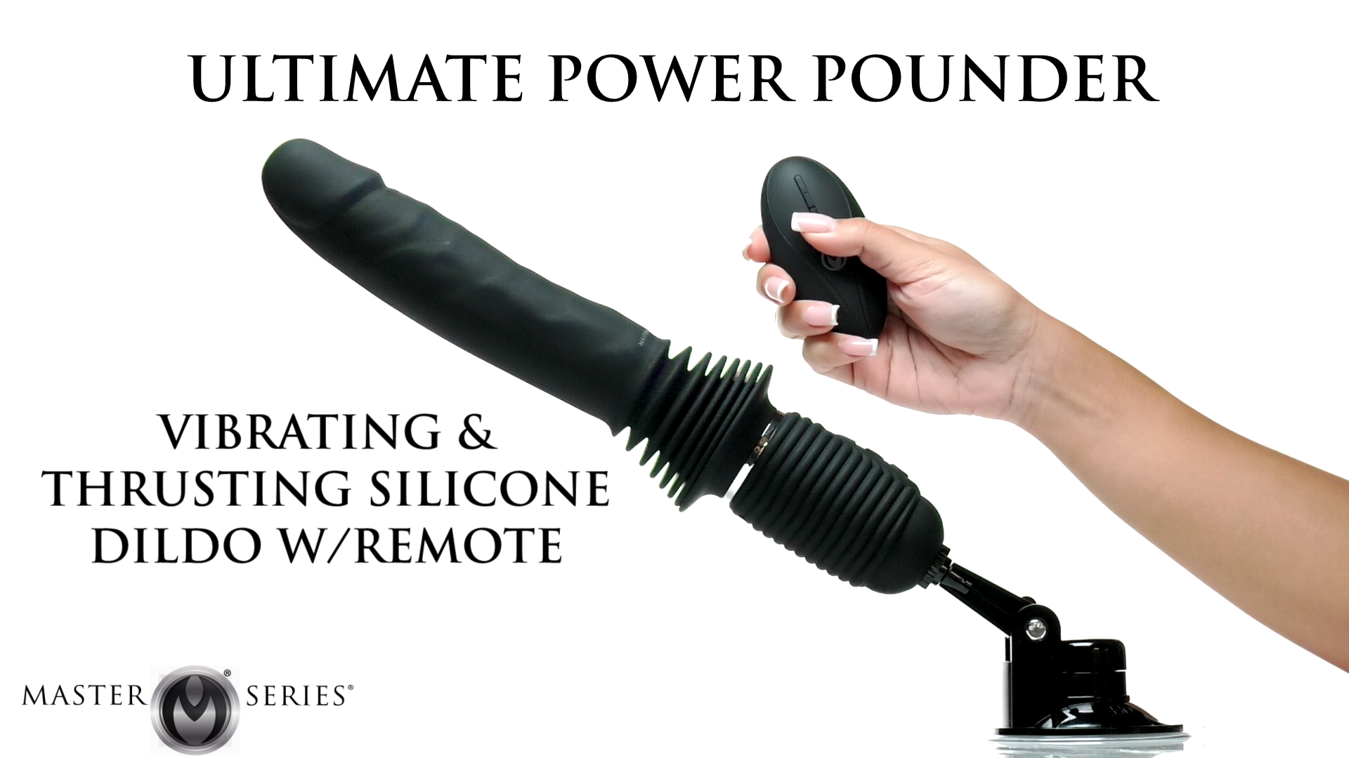 Experience the unparalleled sensation of the Ultimate Power Pounder Vibrating & Thrusting Silicone Dildo. Designed with a silky smooth, realistic feel, this premium silicone dong features a lifelike mushroom head and veiny shaft. Take your pleasure to new depths with three thrusting speeds, three steady vibration speeds, and seven unique vibration patterns. Easily recharge the dong with the included USB cable. Its adjustable stand allows for a 0° - 180° range and affixes securely to flat surfaces with its strong suction-cup base. With the battery-operated remote, you or your partner can control the settings from up to 26 feet away, ensuring maximum convenience and satisfaction.