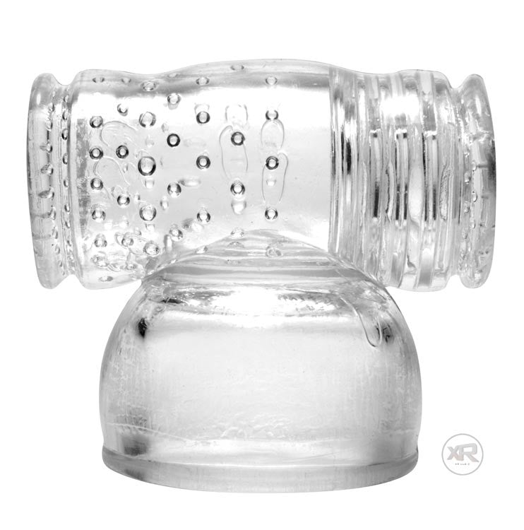 Designed from a soft TPR material, this stroker works with a wand massager to deliver intense stroking sensations for men. It works with any standard sized wand massager, sliding easily over the massager head. It features small pleasure nubs, a narrowing tunnel, and internal ribbing for stimulation with each stroke.